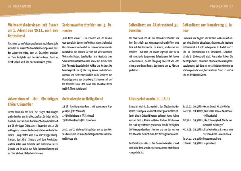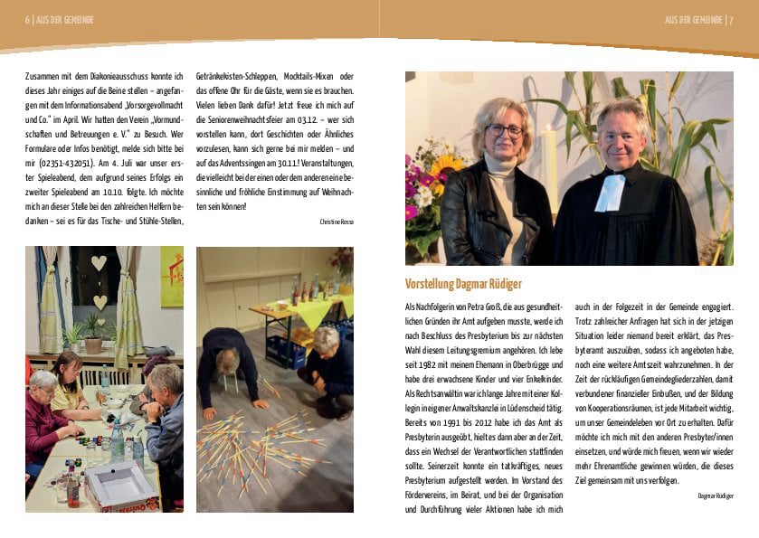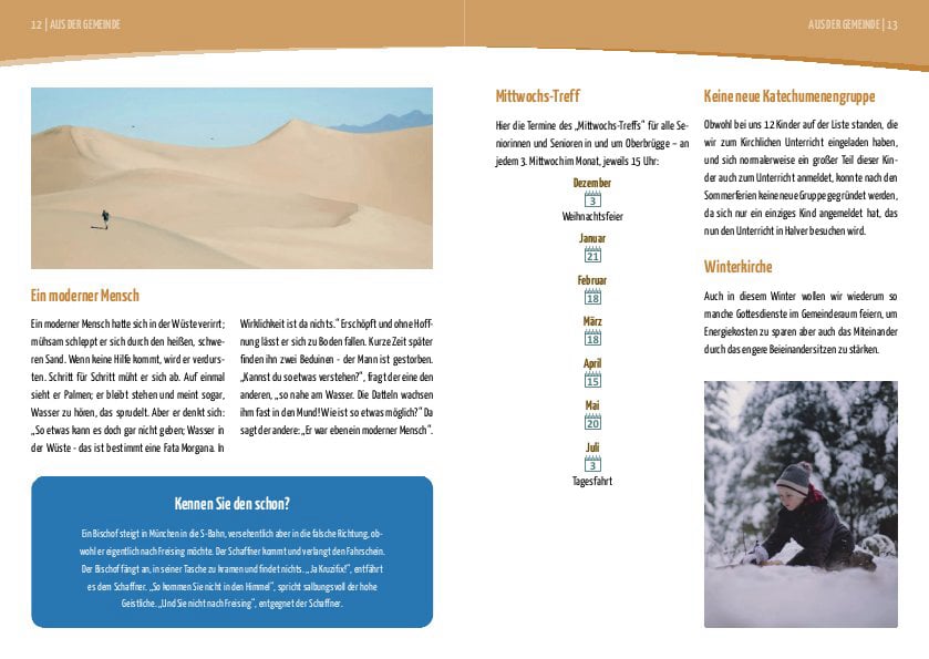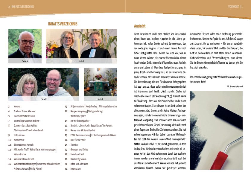 Dreimal im Jahr erscheint unser Gemeindebrief. Wenigstens, wen alles glatt läuft. Er wird im Ort verteilt und an entfernt lebende Mitglieder verschickt. Online kann man ihn hier lesen.