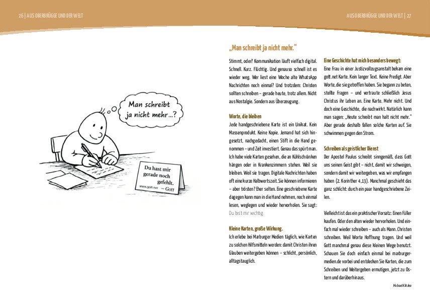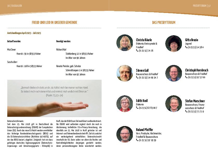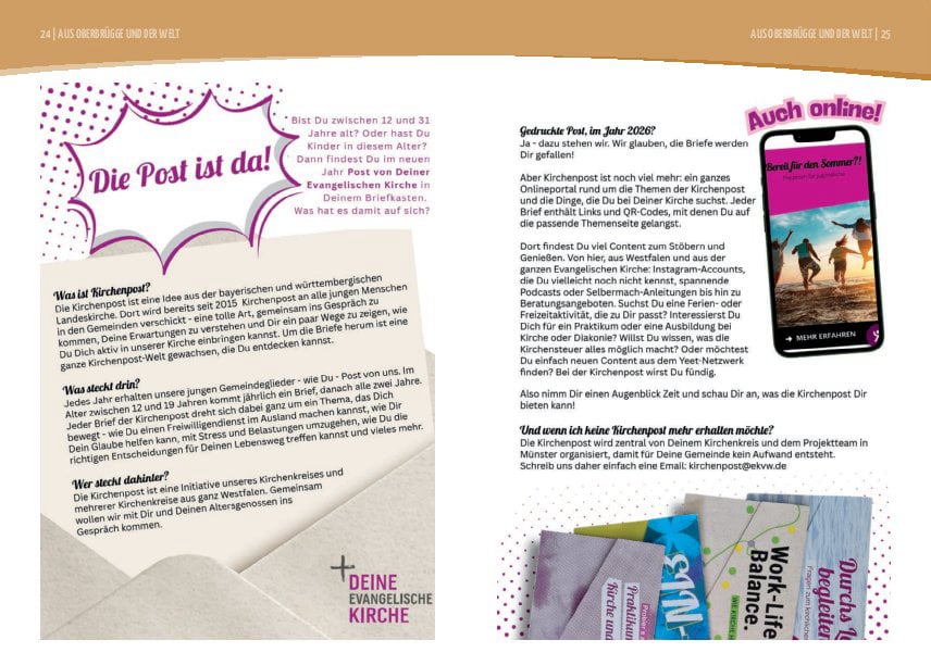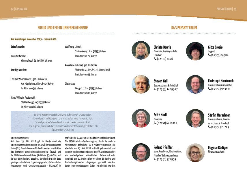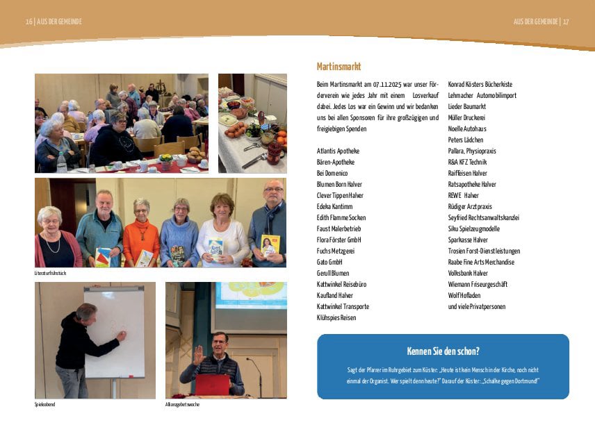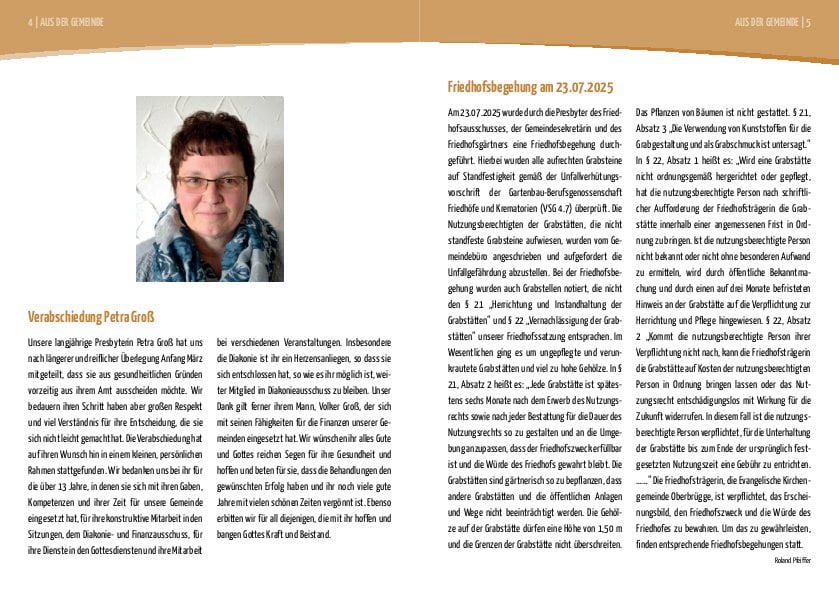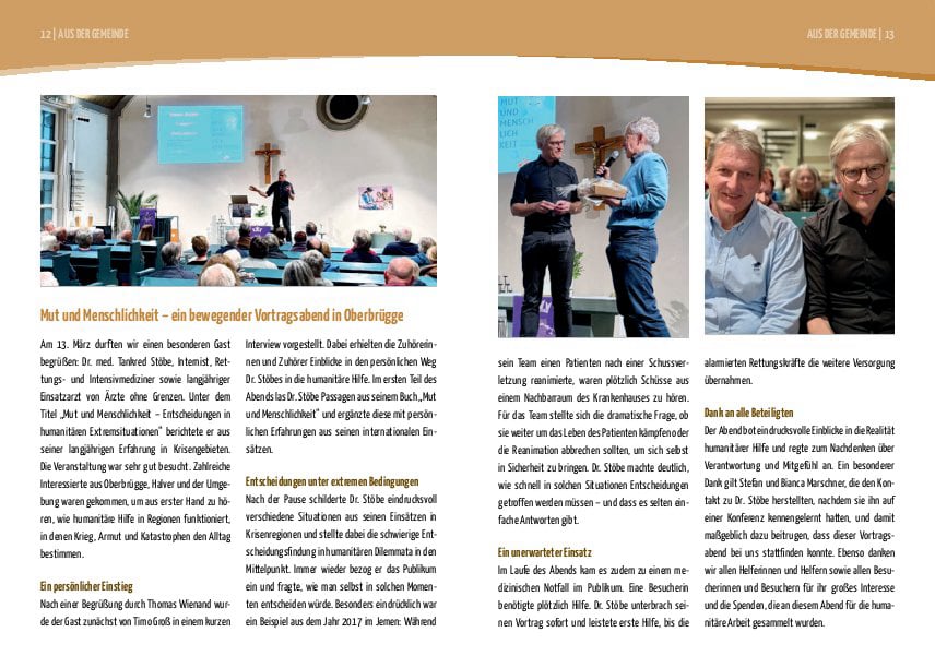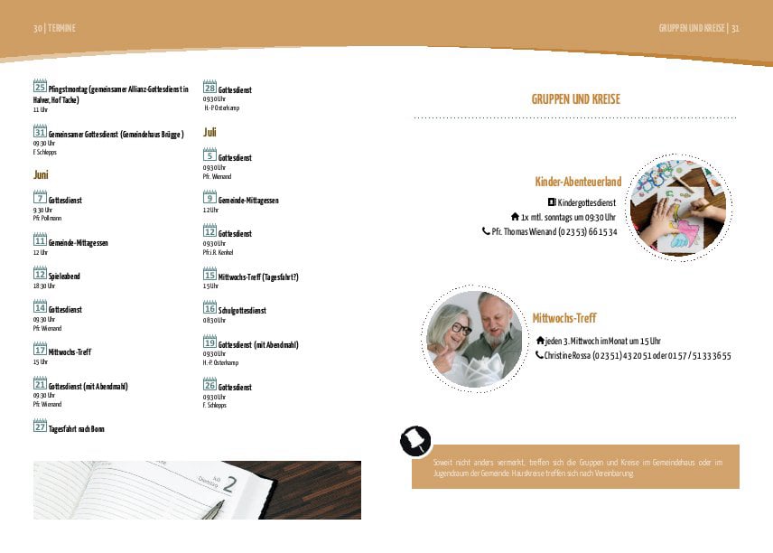 Dreimal im Jahr erscheint unser Gemeindebrief. Wenigstens, wen alles glatt läuft. Er wird im Ort verteilt und an entfernt lebende Mitglieder verschickt. Online kann man ihn hier lesen.