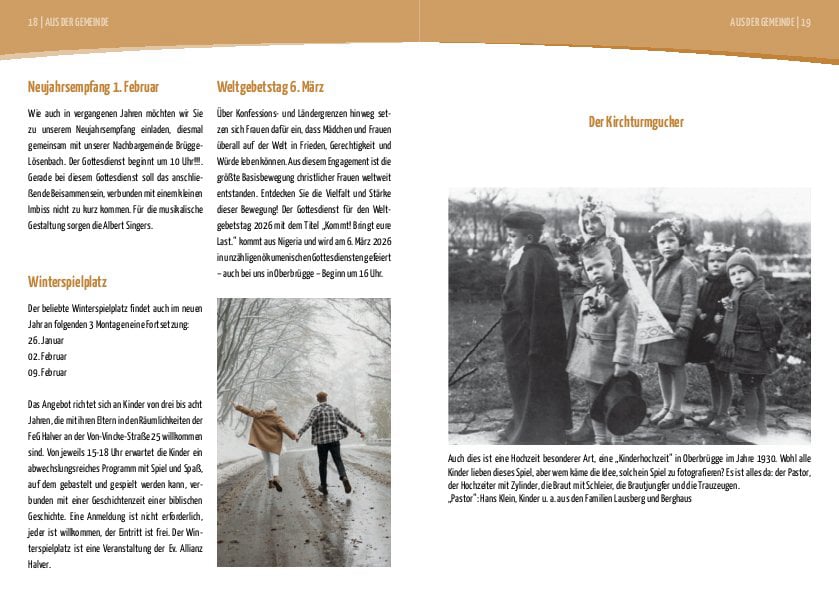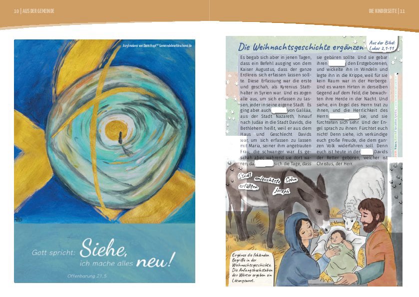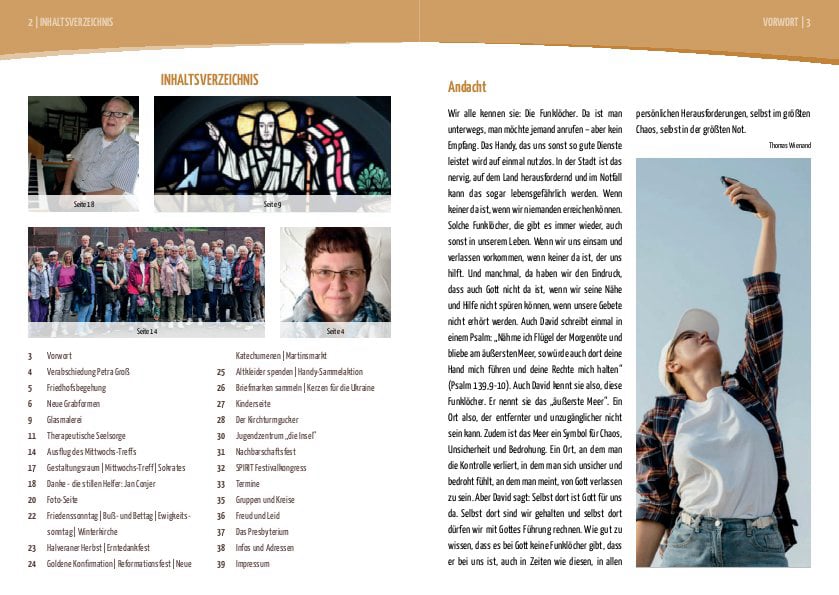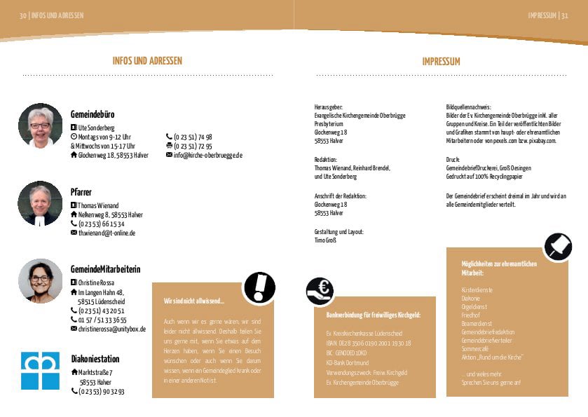 Dreimal im Jahr erscheint unser Gemeindebrief. Wenigstens, wen alles glatt läuft. Er wird im Ort verteilt und an entfernt lebende Mitglieder verschickt. Online kann man ihn hier lesen.